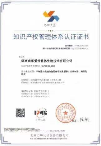 2021年3月31日,南華生物控股子公司湖南南華愛世普林生物技術(shù)有限公司順利通過知識產(chǎn)權(quán)管理體系貫標(biāo)認(rèn)證。該證書的獲得將更好地保障技術(shù)創(chuàng)新,推動公司可持續(xù)發(fā)展,也進(jìn)一步體現(xiàn)了公司知識產(chǎn)權(quán)管理體系的標(biāo)準(zhǔn)化、規(guī)范化與系統(tǒng)化,標(biāo)志著公司進(jìn)入規(guī)范化、系統(tǒng)化、科學(xué)化管理的全新階段。