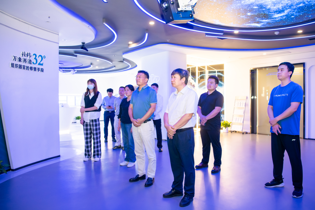 在南華生物總經(jīng)理游昌喬的陪同下,劉選國副理事長一行先后參觀了南華臨床級細胞生產(chǎn)基地、南華生物細胞與再生醫(yī)學科普館,詳細了解南華生物在生命科學研究、公共醫(yī)療服務(wù)、生產(chǎn)質(zhì)量管理等方面的情況。