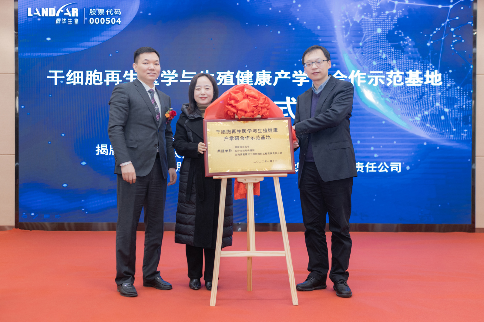 2021年,南華生物全資子公司湖南博愛康民干細(xì)胞組織工程有限責(zé)任公司與長(zhǎng)沙市婦幼保健院、湖南師范大學(xué)三方簽訂協(xié)議共建“干細(xì)胞再生醫(yī)學(xué)與生殖健康”產(chǎn)學(xué)研合作示范基地。2022年1月10日,長(zhǎng)沙市婦幼保健院副院長(zhǎng)賀駿、湖南師范大學(xué)副教授胡翔、湖南博愛康民干細(xì)胞組織工程有限責(zé)任公司總經(jīng)理吳樂為“干細(xì)胞再生醫(yī)學(xué)與生殖健康”產(chǎn)學(xué)研合作示范基地揭牌,正式啟動(dòng)建設(shè)。