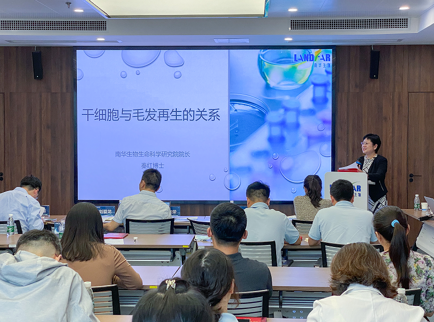 在首屆“南華生物科普大講堂”上,中南大學(xué)湘雅醫(yī)院藥物分析中心副主任譚志榮、湖南師范大學(xué)生命科學(xué)學(xué)院副教授胡翔、南華生物生命科學(xué)研究院院長秦紅分別做了“干細(xì)胞在阿爾茨海默病的研究進(jìn)展”、“干細(xì)胞外泌體的研究與應(yīng)用進(jìn)展”、“干細(xì)胞在毛發(fā)再生的研究進(jìn)展”主題科普講座?;顒?dòng)現(xiàn)場的科技工作者向三位專家踴躍提問,三位專家對他們的問題進(jìn)行了耐心細(xì)致的解答。