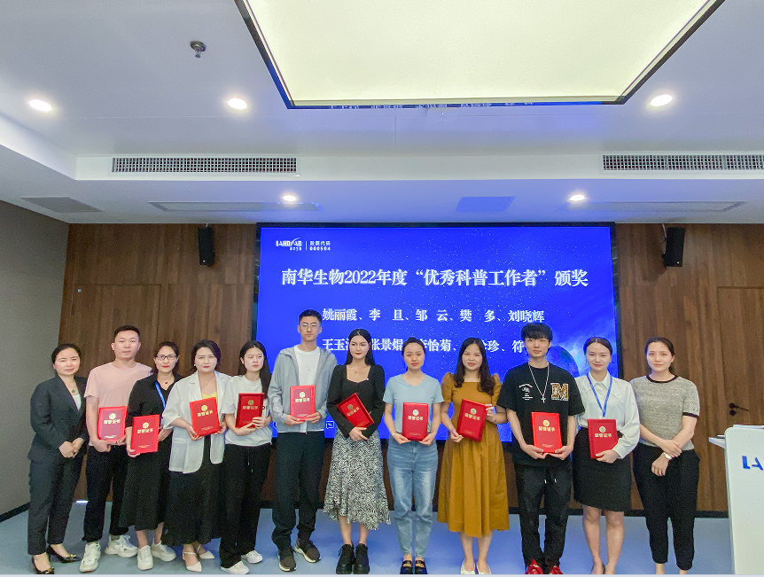 南華生物醫(yī)藥股份有限公司董事、總經(jīng)理、科協(xié)主席游昌喬在致辭中指出,科技是國之利器,國家賴之以強(qiáng),企業(yè)賴之以利,人民賴之以富。南華生物作為目前國內(nèi)唯一一家國資控股的干細(xì)胞免疫細(xì)胞及組織工程主板上市公司,將秉承“精益求精,德達(dá)天下”的理念,堅(jiān)持自主創(chuàng)新,嚴(yán)把質(zhì)量與服務(wù)關(guān),打造“四精三好”型臨床級細(xì)胞生產(chǎn)基地,在公司全體科技工作者的共同努力下,以“博愛康民、惠澤大眾”為己任,堅(jiān)持人民至上、生命至上,為保護(hù)人民生命安全和身體健康奮斗,為構(gòu)建人類衛(wèi)生健康共同體注入新動(dòng)力?;顒?dòng)現(xiàn)場,還進(jìn)行了2022年度南華生物“優(yōu)秀科技工作者”“優(yōu)秀科普工作者”頒獎(jiǎng)儀式。