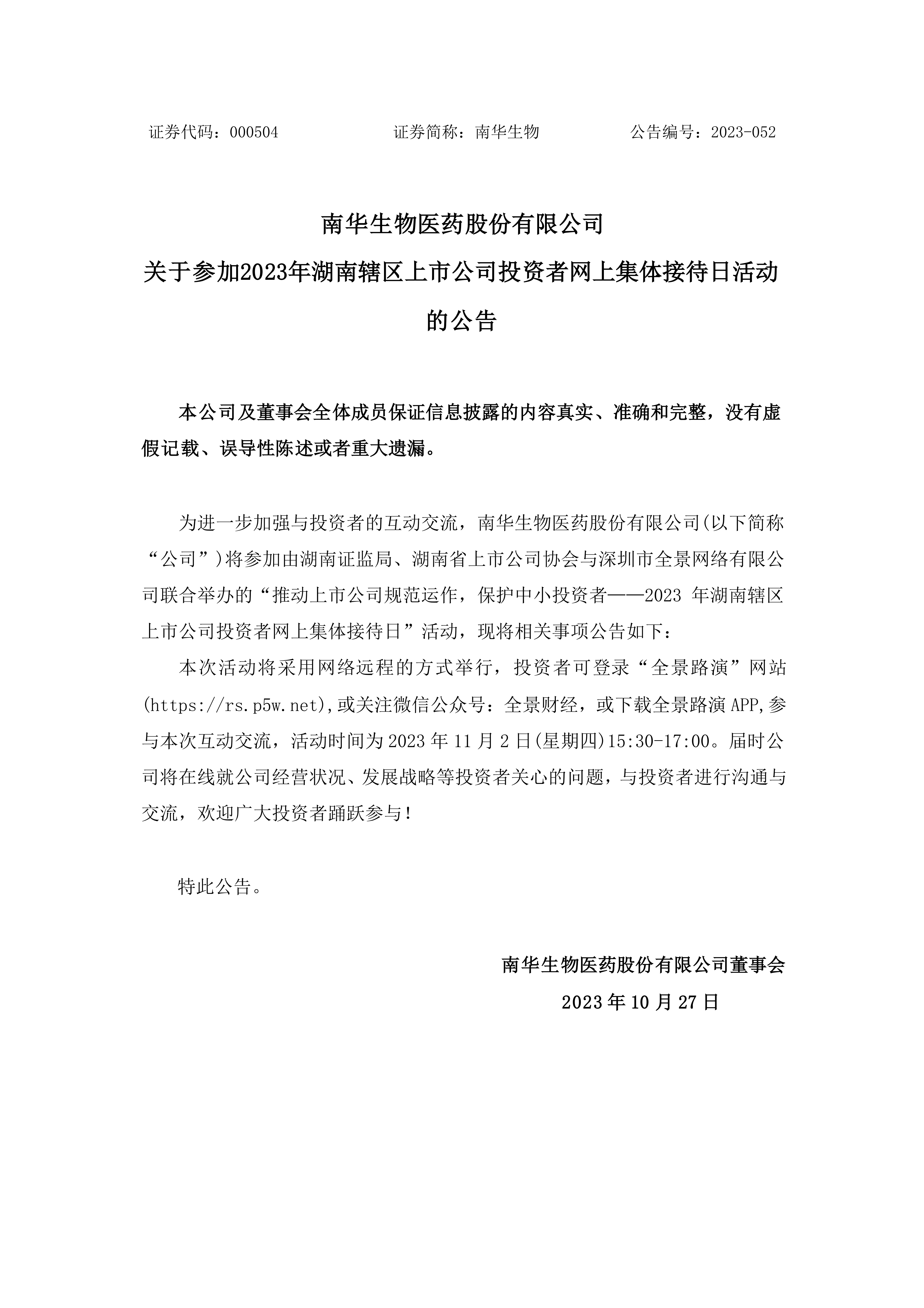 南華生物(000504)最新股價